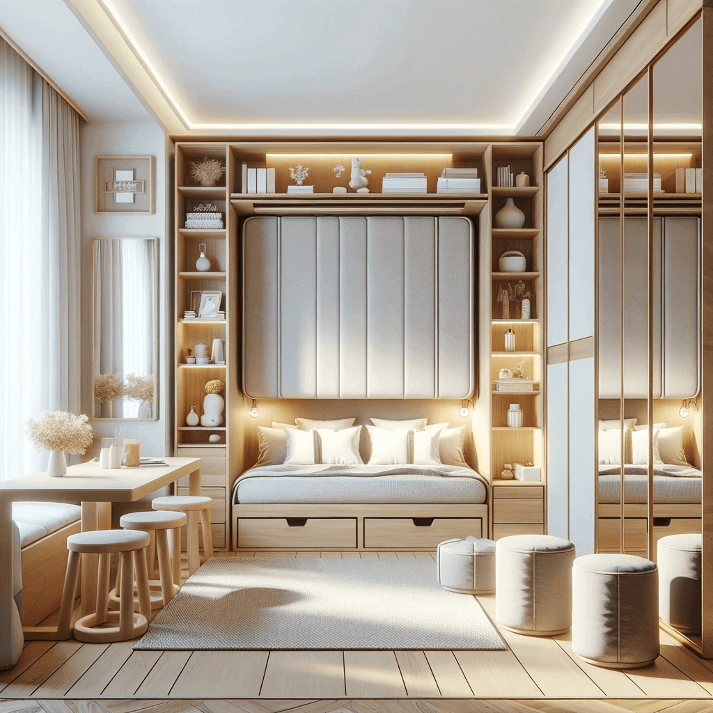 Ein wichtiger Grundstein für die optimale Nutzung begrenzter Räume ist die strategische Auswahl der Möbel. Platzsparende Möbel sind multifunktional, anpassungsfähig und oft individuell anpassbar, um den individuellen Abmessungen jedes Raumes gerecht zu werden. Zu den wichtigsten Möbelstücken gehören: